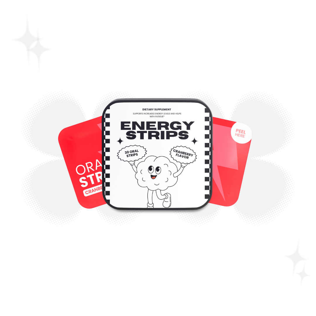 Cranberry-flavored oral strips for on-the-go energy—zero prep, full focus.