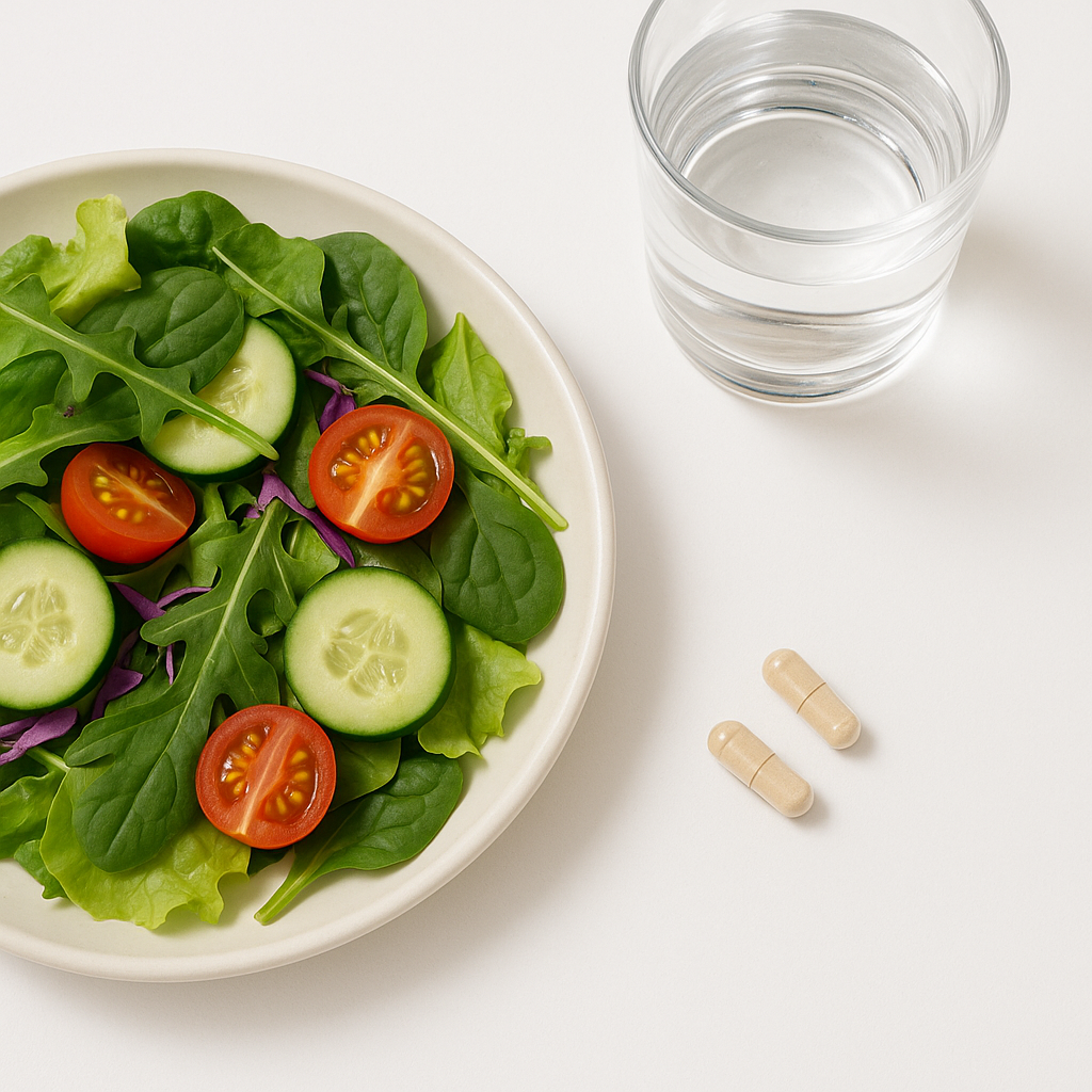 Drink a full glass of water to help the capsules dissolve and support digestion.